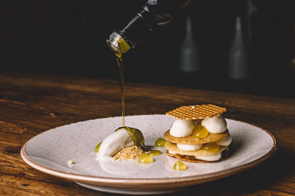 - Fresh olive oil from our grove, drizzled over artisanal bites